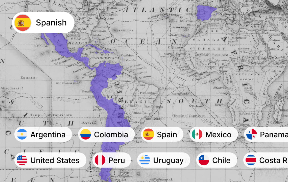 The U.S. is home to one of the largest Spanish-speaking populations, shaped by immigration from Mexico, Central America, the Caribbean, and South America, as well as long-standing communities in the Southwest and Florida.